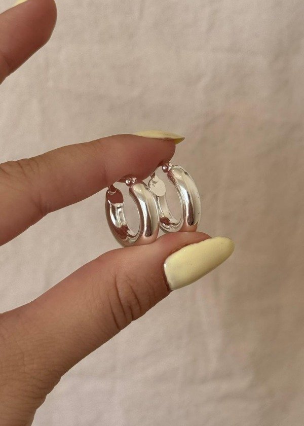Argollas chunky de acero blanco. Con estructura es maciza, pero liviana para usar todos los días. Cuentan con cierre a presión.