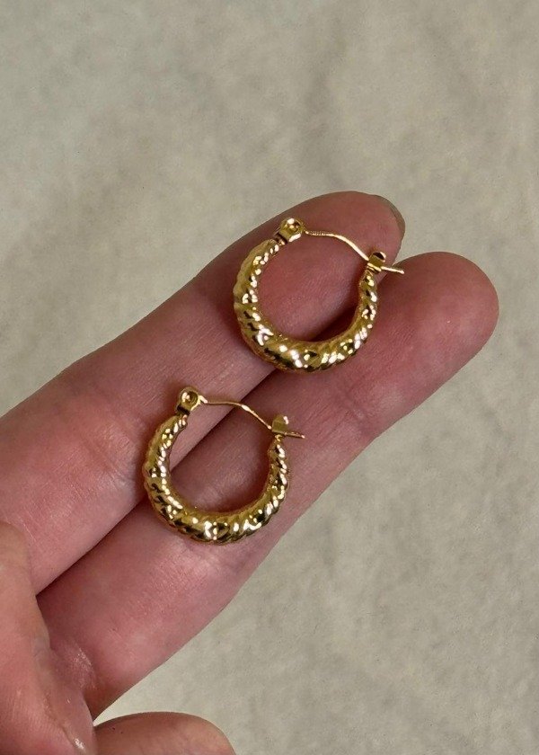 Aros argolla de 1mm en acero dorado con textura. Cierre integrado.