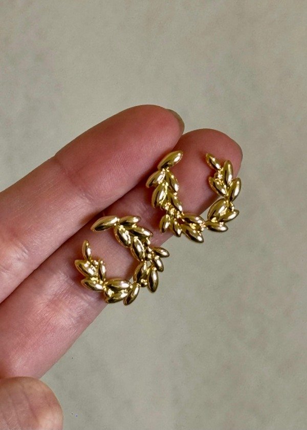 Aros de acero dorado con diseño circular en forma de hojas. Cierre mariposa