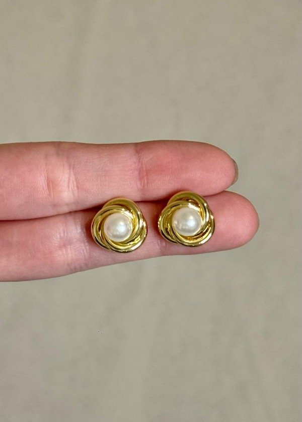 Aros de acero dorado con diseño de roseta con una perla en el centro. Cierre mariposa.